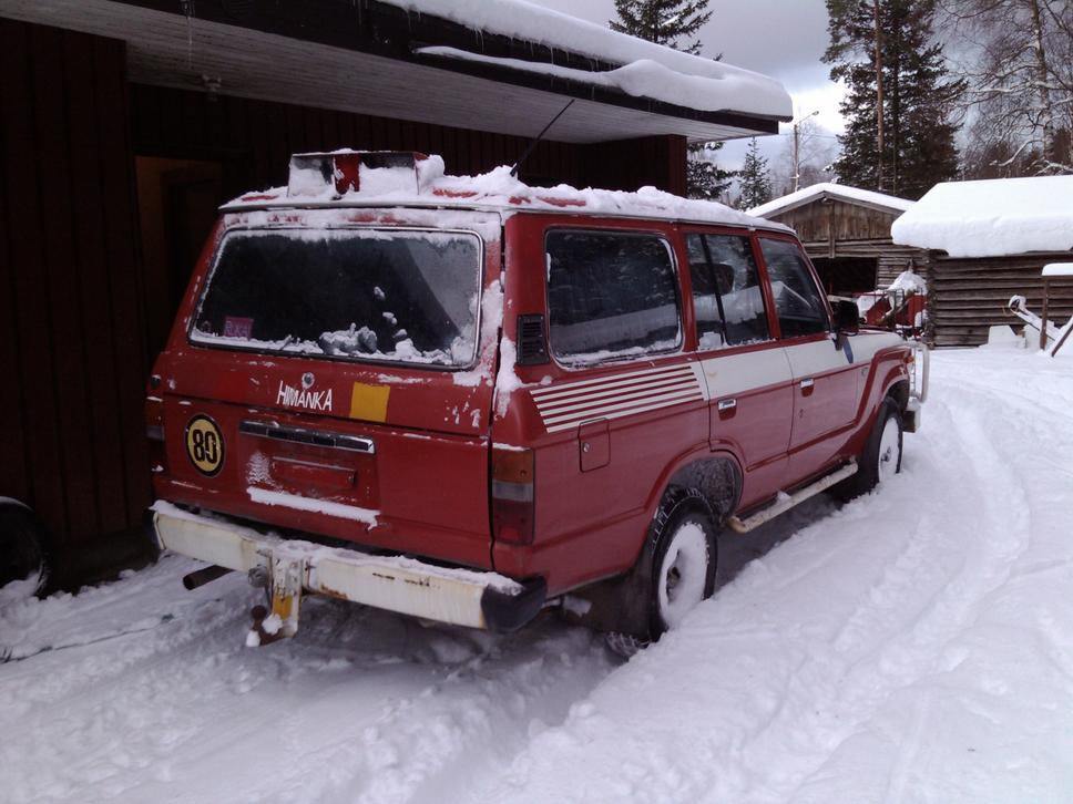 HJ60 käyttöauto prokkisJep ostin tällasen HALVALLA ja siitä pitäs alkaa tekeen käyttöautoa. Nyt ku oon tarkemmin kahtonu nii eipä oo löytyny muuta hitsattavaa ku vänkärin puolen takasisälokarin reikä pitäs korjata. Muuten näyttäs olevan hyväsä kunnosa. Vanha palolaitoksen johtoauto. Kaks vuotta oli auto seissy pihalla ja ku saatiin sähköt selville nii johan hörähti käyntiin. Kaikki tuntuu pelaavan hienosti. Olivat kuulemma rempannu nelivetoa ennen seisontaan jäämistä. Uudet kesänakitki oli laitettu alle.