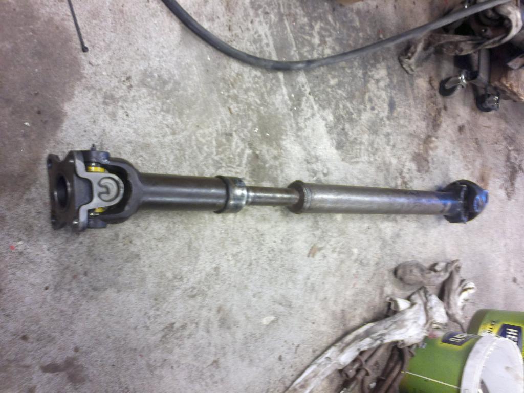 :Sitten samaan vauhtiin nappasin kardaanin irti: Eri ristikko + sovitelaippa paikoilleen ja kardaanin liu'un huolto ja ristikkojen rasvaus: Tollanen siitä sitten tuli: Ja ei muuta kuin paikoilleen: Jos sitä seuraavaks siirtys tuon etuakselin kimppuun... |