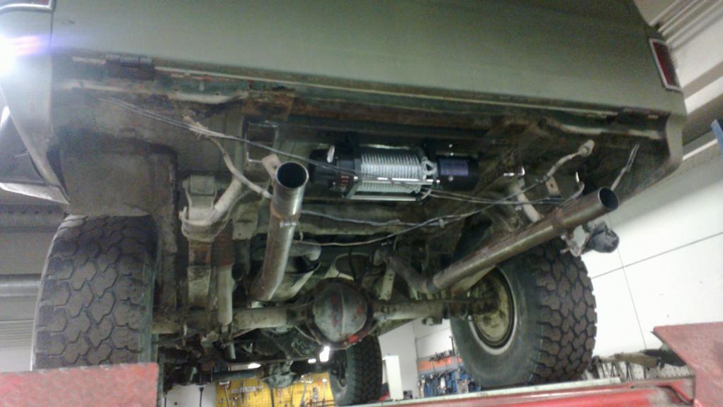 Se oli vm-79 , Chevrolet Fleetside , lyhyt ja leveä lava , 350 + 350 +203 muistaakseni , remmiahdin ja riittävästi korotettu , alla oli 44" Mickey Thompson BajaClawit , ja tää koko paketti oli katsastettu , myös renkaat.