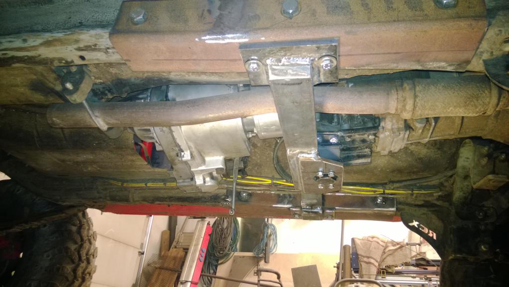 Tuo vanha tukipalkki on ottanut osumia tuolta 'runkopalkin' vierestä kun toisella puolella on kardaani ja toisella puolella pakoputki niin panssaria ei oikein voi ihan reunaan vetää, mutta pitää kattoa joskos tuohon pakarin puolelle hitsais vähän suksea palkkiin että liukuu paremmin eikä niinkään töki. |