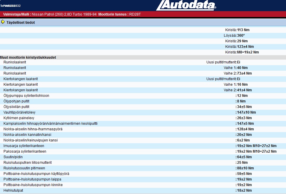 misteehän tuota lähtis purkamaan ongelmaa, ko Y61 korinen GR patu ei oikeen tykkää vetää. on nimittäin RD28 vaparikoneessa ihan saman verran vetoa kun nyt tuossa uudemmassa, MAF on vaihdettu, samoten PA suodin, lähinnä vika ilmenee alakierroksilla ja pitkissä ylämäissä, onko esmes tulopuolella niitä paskasihtejä banjoissa? ei nimittäin anna yhtään mustaa, vaikka miten polkis