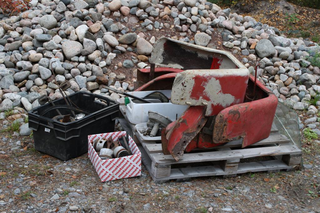 Pikkusen ehti tänään tuota purkamista jatkaa, kaikkea pientä irtosi talteen päiväseltä. Etupuskuri ja putkiviristys lähti mäkeen