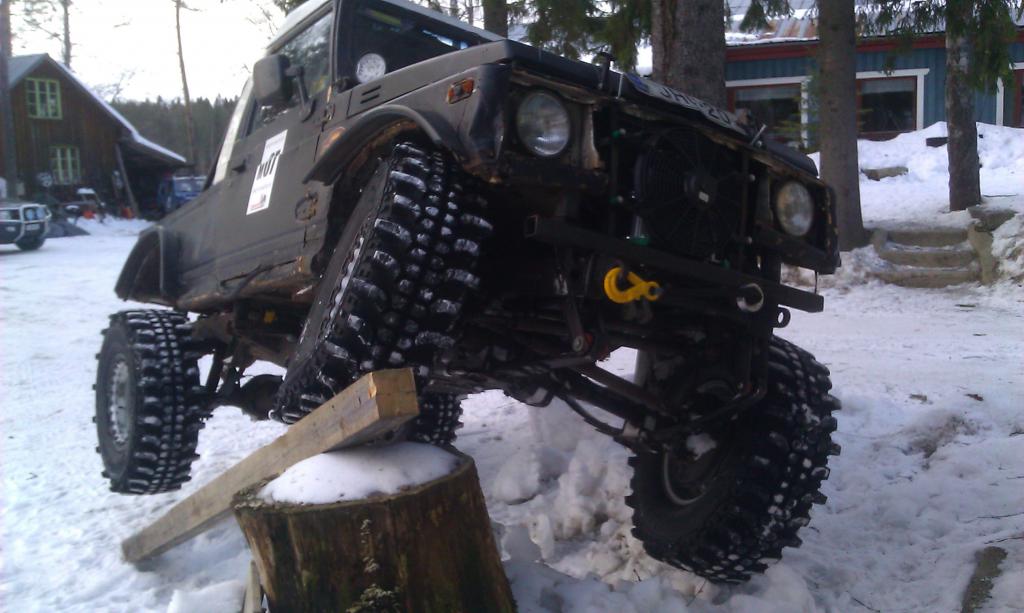 Joitain osasia löyty pihan nurkista ja jotain tullu hommailtua, lj:n akselit, ziarelli 35\12,5-15 renkaat ja motivaatio löytyi eteläsuomen peränostoretkeltä. 110cm pitkät bilsteinin coiloveritkin ilmesty matkahuoltoon. Lj:n etujakarit asemoitiin eteen ja lisättiinpä sinne akselin yläpuolelle yks tukivarsi lisääkin. Taakse viskattiin rangen kolmilinkki. Coilien kaveriksi asemoidaan vielä profenderin 4" bumpstopit. Renkailleen saatiin ni kiireesti pihalle vähän venyttelemään. Ihan kohtalaisestihan tuo veny noinkii kevyessä varustuksessa. Edestä metrinverran ja takanta parkytsenttiä vähempi. Viimeksi muokannut turakoitsija : 06.03.2015 11:47 |