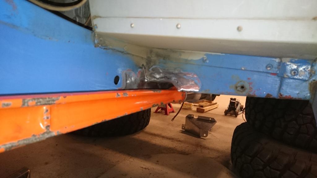Ajovaloihin väkästelin huohotukset, eikä ole senjälkeen tarvinnut harmitella umpioiden tuhoutumista, sisään päässeen veden takia. Jarrut myös heikkenivät aikaajoin, uusi pääsylinteri ja putkilähtöjen siirto auttoi siihen. Niminerkki Pajares rakensi mulle uuden etukardaanin vääntyneen tilalle, tuli muistaakseni 5 mm seinämällä, toivotaan että nyt kestäis.Sitten olikin syyshuollon aika, ensin pesu, ja sit alko osat irtoon. Vinssit tuli huollettua. Sitten siiryttiin itse päätapahtumaan, tukivarren korvakkeiden haihduttamiseen, nuo Rooverin tukarin korvakkeet, jotka tulevat rungon alareunan alapuolelle, ovat aina solmussa ja jokapaikassa kiinni. Nyt on ko. ongelma rälläköity pois. Tommoset sinne tulee, esimerkin vuoksi kuvassa on Rooverin vakio, vahvistettu, ja sit Gigglepinin takatukivarsi. Toivottavasti nyt kestää. Siellä lepäävät, etutukari vaatii vielä pienen jatkopalan tuohon väliin, sitten vielä vähän maalia ja hyvä tulee. Jatketaan kertomusta kun hommat etenee.