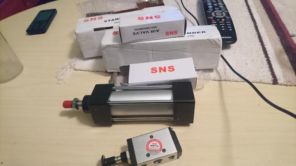 Tuli kans tilailtua Ebaysta muutama paineilmasylinteri ja venttiilit näille niin saapi vanhukseen vähän hi-tech-osia lukkojen ohjaukseen. Jostaki vielä pitäis keksiä 24v kompura? Vai 12v alentimen kautta kun jotenki semmonen muistikuva, että nuo 24v olis aika kiven alla.. Ja säiliöksi vanha sammutin kun niitä pyörii nurkissa. |