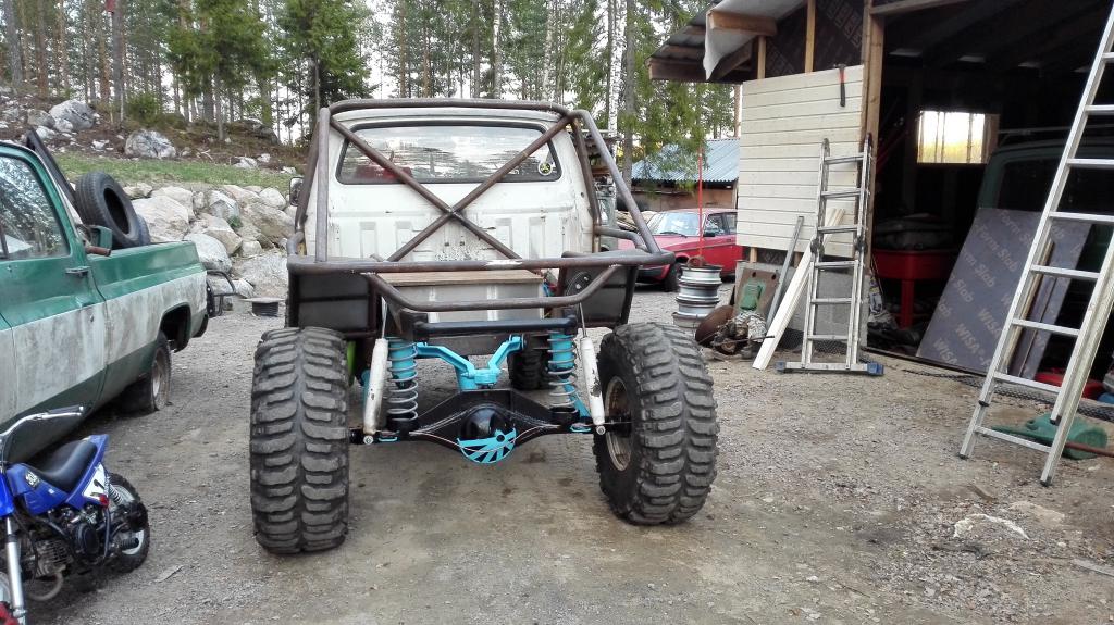 Kuluneen viikon aikana koitettu jotai saaha aikaseks. Elikkä nyt pyörät kääntyy ratista. Simpukaks tuli hj:n ja pumpuksi tuli volkkarin 1,9tdi:stä. akselikin pysyy keskellä kun panhadi saatiin väkerrettyä paikalleen. Myös ensimmäisiä venyttelyjä sain tehtyä mutta massikasta loppui nostovara kesken niin ei ihan äärijoustoja nähnyt