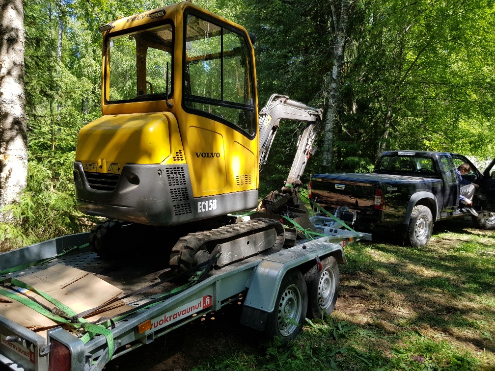 Ohessa n. 1,8 tn kuorma 2,5tn kärryssä. Lisäksi 300kg lavalla. Kulkeehan tuo ihan kohtuudella mutta painon kyllä tuntee. Liikkeellelähdössä saa käyttää kytkintä. Kulutus kasvaa reippaasti verrattuna tyhjänä ajoon. |