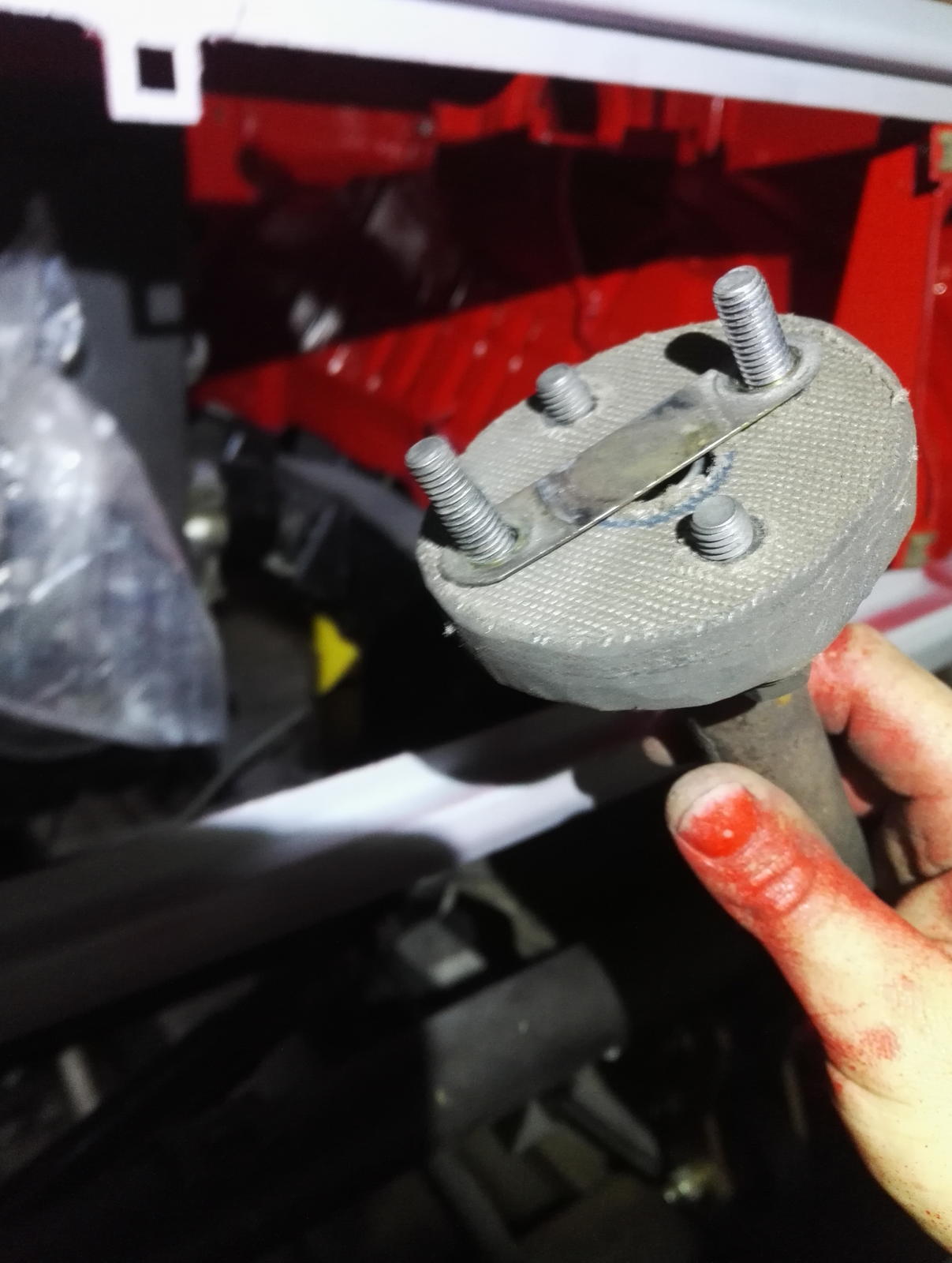 Koska palkki oli ikävässä paikkaa, kori ilmaan. 30min askartelun jälkeen henkeä uhkaava ja huojuva teline oli valmis. Liinoilla ja köysillä kori ylös ja alusta moottoreineen alta pois. Tätä edelsi tietenkin loputon savotta ruostepulttien ja päämärättömien sähköjohtojen kanssa.