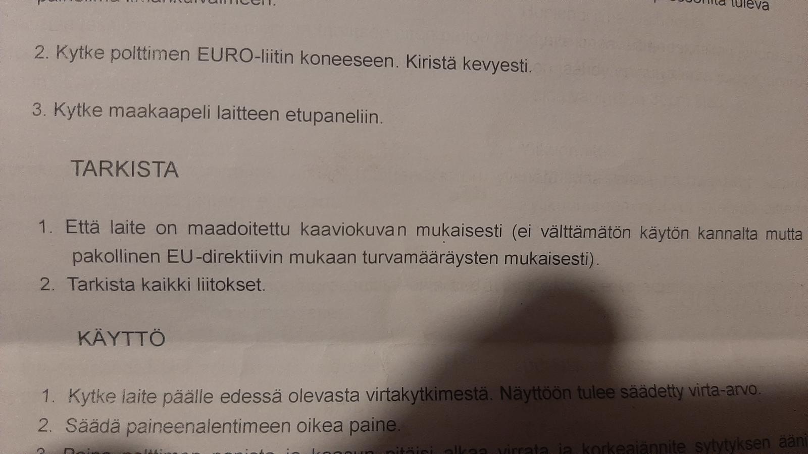 """"MAADOITUS Jokaisen hitsauskoneen takapuolella on ruuvi maadoitusmerkinnällä. Ennen käyttöä laite tulee maadoittaa kaapelilla, jonka halkaisija on vähintään 6 mm².""" -> "normaalista autotallista" siis harrastekäytössä olevista; ei taida monestakaan löytyä pistorasiaa tms, mistä saisi maadoitettua vähintään 6mm2 """halkitsijaltaan"""???? olevalla "kaapelilla" jonkin koneen takapuolella olevan olevan "ruuviin". Voi olla ihan hyvä kone... Minulla on Italialainen? plasma, millä pitäisi pystyä leikkaamaan 16mm, ja onnistuu jos uudet elkut/suuttimet, ja kunnolla sähköä. 12mm levyn leikkaaminen on "suoritus", ja 8mm levyä voi leikata "huolellisella asenteella" 4mm levy menee jo "vasemmalla kädellä" Autopeltihommissa, siis kun leikataan 0,6-1mm peltiä, niin tehoa pitää säätää piemmälle. Minulle ei selvinnyt PIKAISELLA hakemisella, että onko myyjä Suomessa, Saksassa vai EU- ulkopuolella: (mm. prh ei tunne """"ALV-tunnus: FI27164304"""", suomessa jo vuosikymmeniä eri muodossa) Siis jos tulee ongelmia, niin käsitelläänkö niitä suomen kuluttajasuojan, -EU vastaavan- vai käsiteläänkö niitä siten, että olet tuonut laitteen EU- alueelle, siis vastaat kaikesta? |