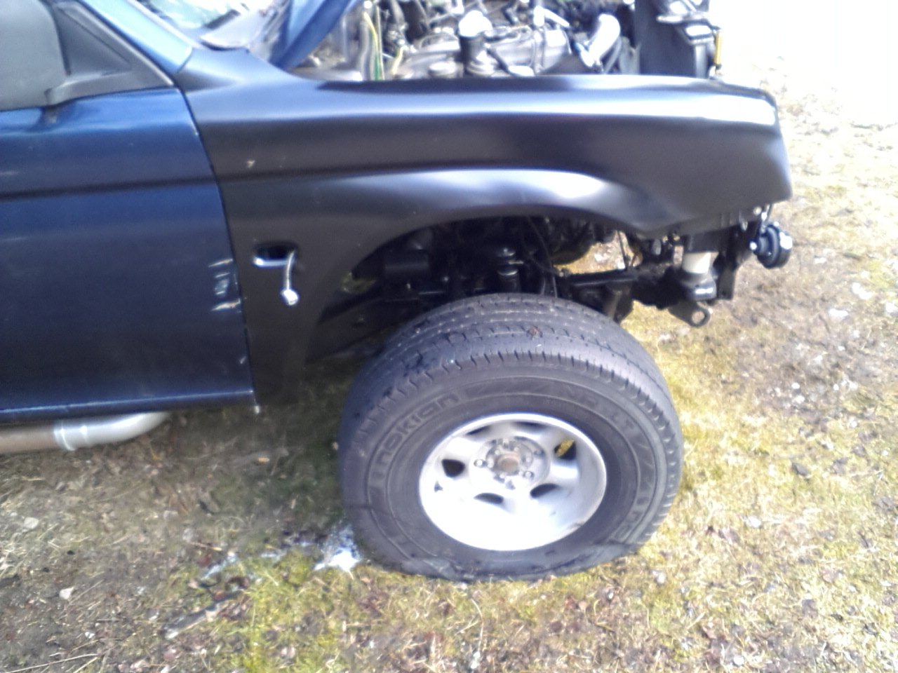 tuolta tuo ny näyttänee L200 keulalla konepeltiä odotellessa sekä pient hitsihommaa et sais kiinnkkeet tehtyä loppuun ja vielä ois puskuri etsinnässä muttei oo sopivanlaista vinssipuskuria tullu eteen