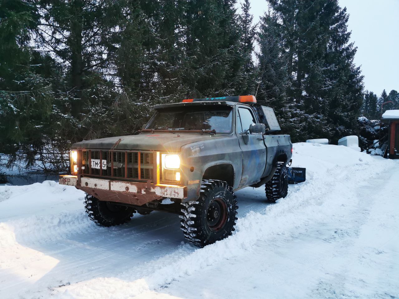 Tänään tuli testattua omaa puskulevyä ensimmäisen kerran, ja kyllähän lumi lähti pihatieltä vähän toiseen tapaan tavalliseen kolaan verrattuna. Tämä on kaupallinen tuote alunperin, mutta muokattu sopimaan Jeepin nokalle. Nosto ja kääntö on alunperin hydraulisia, mutta nosto on nyt vinssillä ja kääntö toistaiseksi kuormaliinalla. Naapurin vanhasta kasvihuoneesta lähtöisin olevat I-palkit päätyivät hyötykäyttöön kun tein niistä kelkan joka kiinnittyy puskurin neliöreikään painamalla ja tukivarsiin puristusliitoksella. Tarkoitus on että puskulevy + kelkka lähtee pienellä työllä irti, niin että mitään ylimääräisiä kiinnityslevyjä ei tarvitse pitää Jeepin nokalla kun sillä offataan. Etujousitus on lukittu jäykäksi kun puskulevy on kiinni. Kaikkea pientä parannettavaa tuossa on, mutta hyvä alku jo tälläisenä.