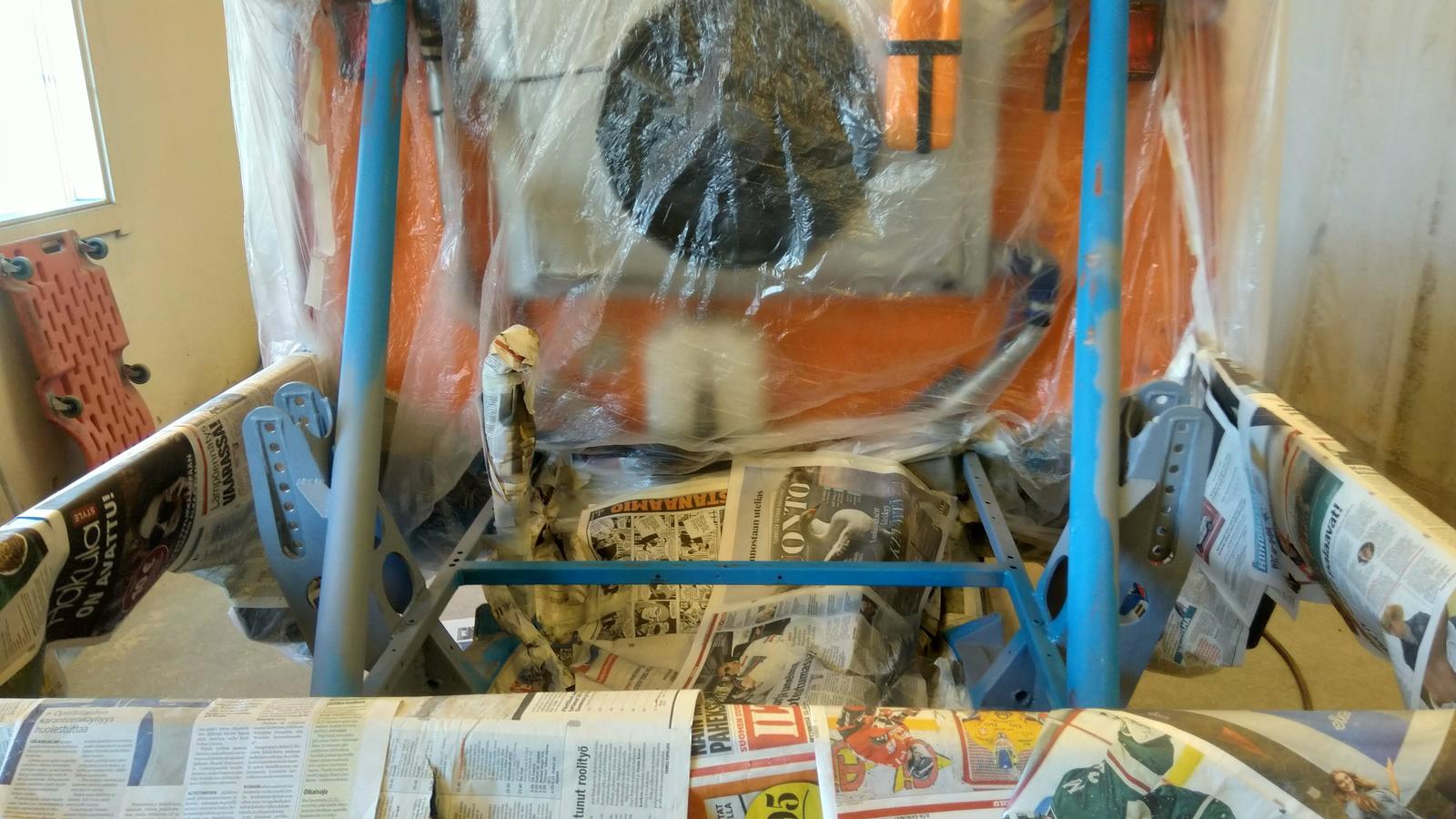 Väriä pintaan, on kyllä hirvee homma suojata noi ei maalattavat kohdat. Kuivukoon tossa nyt hetken aikaa, sit pääsee siihen parhaaseen osioon, kasaamiseen