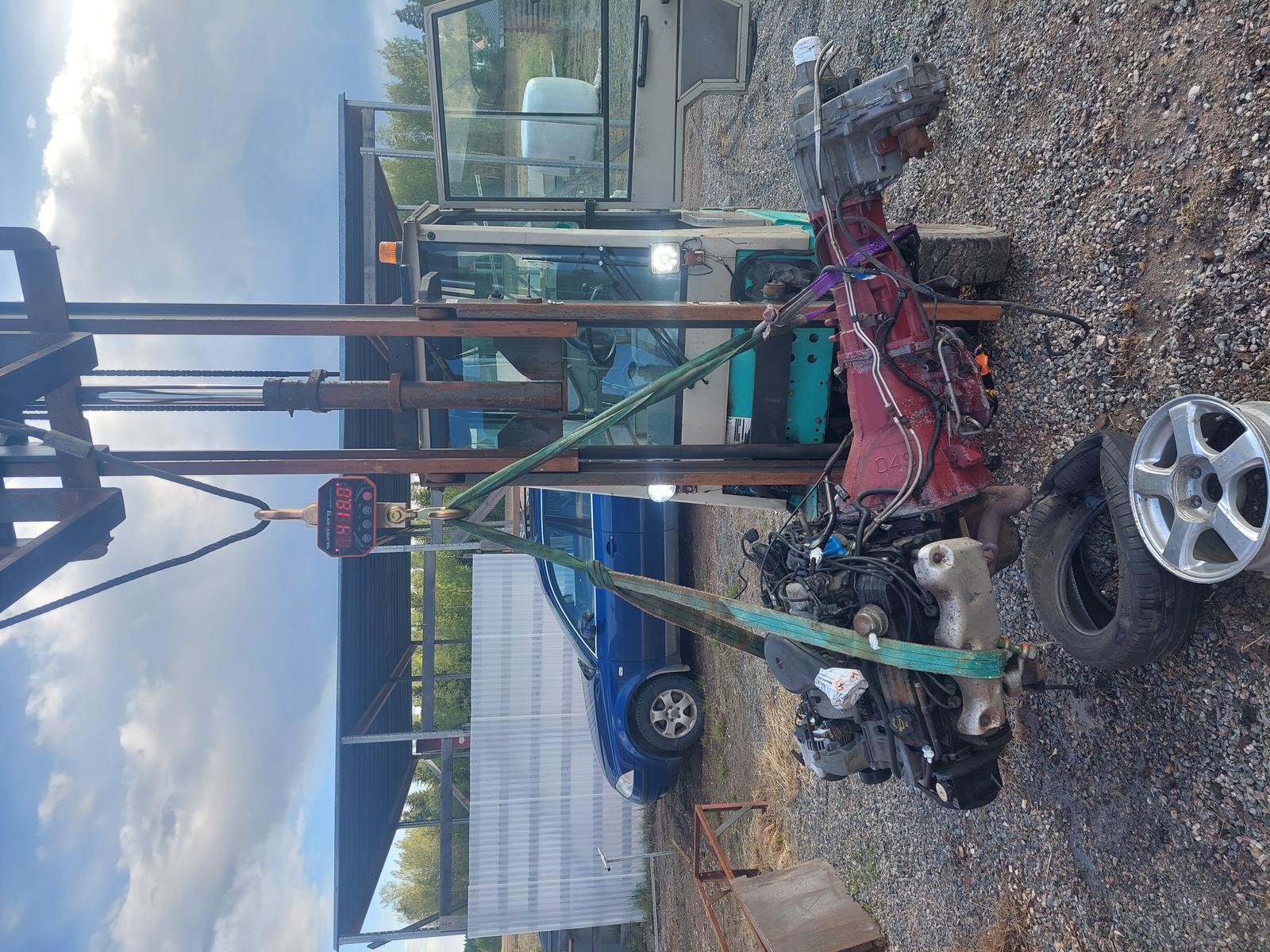 418kg kone apulaitteineen ja laatikot.mitä lie painaa alkuperäinen tekniikka.tässähän oli 3.5 roverin 8 automaatilla ja lt230 jakiksella. Varmaan lähempänä sataa kiloa kevyempi ku tämä setti.