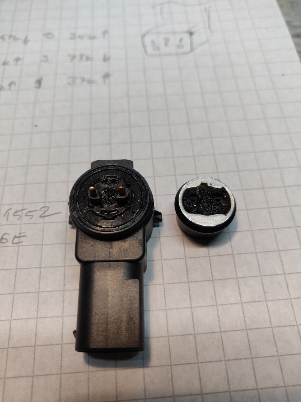 Tavoilleni uskollisena tein ruumiinavauksen anturille. Nettijuttujen mukaan luotettava diagnostiikka on mitata vastukset liittimen pinnojen välillä. Tässä eivät antaneet mitään hyödyllistä tietoa. Kaikki vastusarvot muuttuivat hissukseen eikä olut avoimia eikä oikosulussa olevia pinnejä.