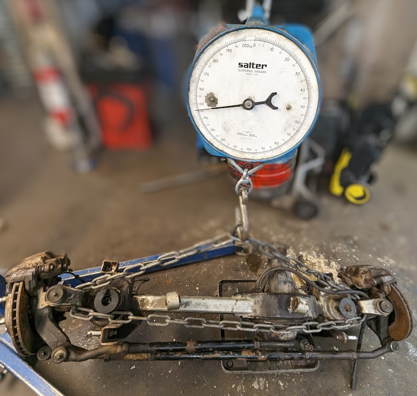 Akseli painaa n 140kg vs vakio 115kg (vakio ilman jarrusatuloita ~3kg/kpl?, tukivarsia 2,5 & 4kg /kpl, jousia 6kg/kpl ja iskareita 3kg/kpl) Korin päästä piti vaihtaa panhardin kiinnike, helppo nakki kun oli jo paikalleen hitsattu versio ja koria siis vahvistettu riittävästi. Narulla ja painolla on helppo linjata akseli keskelle ja tarkistaa liikettä jousituksen ääriasennoissa. Panhardin tai välivarsi eivät osu öljypohjaan missään tilanteessa, mutta.. pakosarjan kanssa on hiukan ahdasta kun molemmat puolet on äärijoustossa sisällä. Bump stopit siis tämän mukaan. Voi olla että jossain vaiheessa vaihdan pakosarjat sellaisiin joissa lähtö "takana" eikä "keskellä" kuten näissä ns block hugger malleissa.