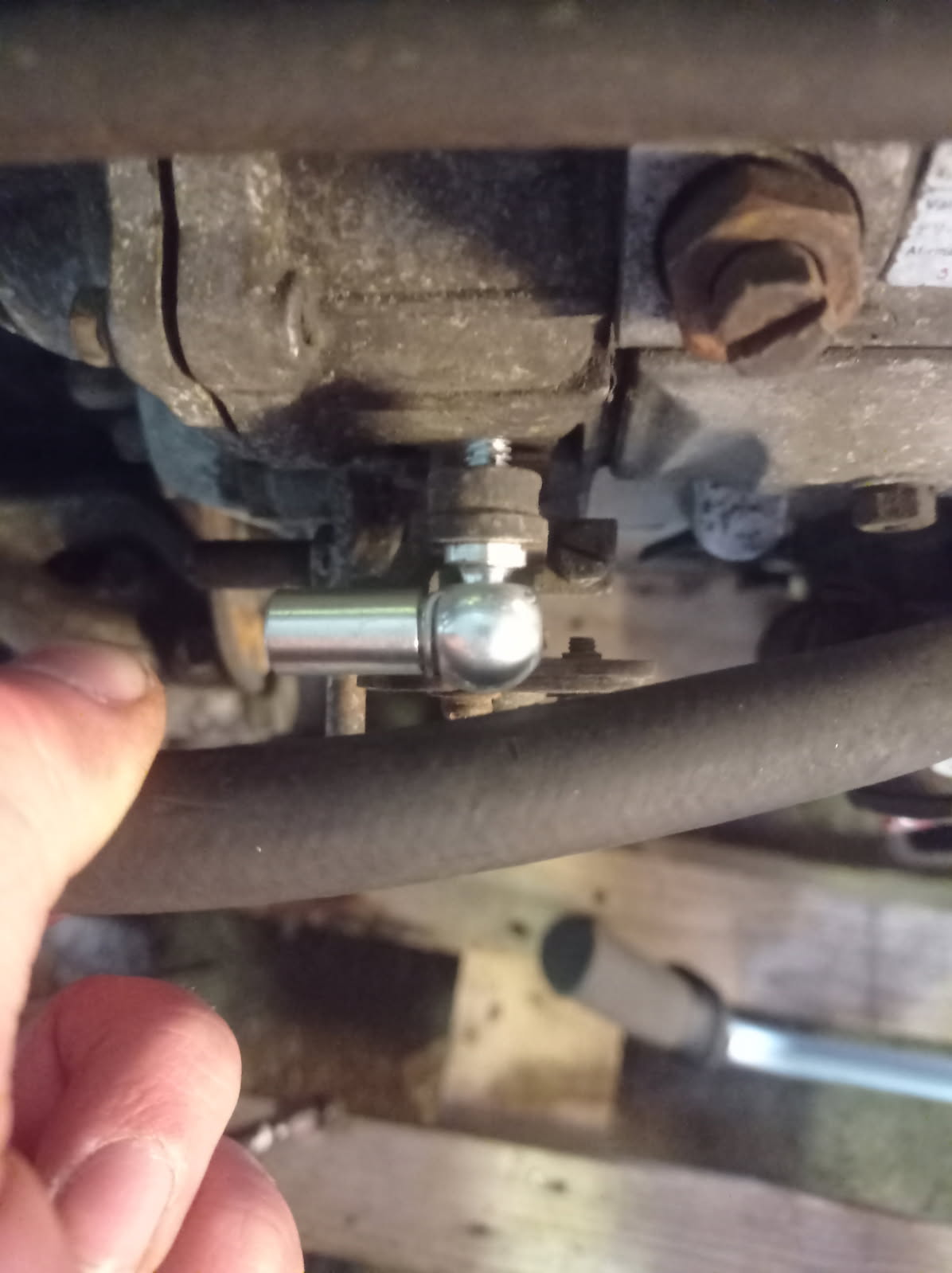 Ostin tuommosen kuulanivelen ja tein tuon sammutin-/pakkosyöttövivun kannakkeen. Hitsasin lattaraudan tuohon syöttöpunpun ja öljynsuodatinjalan väliseen kannakkeeseen. Nyt vaan loppuvivusto hyttiin asti