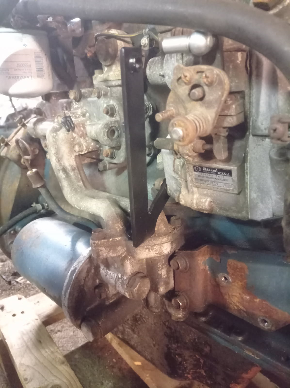 Ostin tuommosen kuulanivelen ja tein tuon sammutin-/pakkosyöttövivun kannakkeen. Hitsasin lattaraudan tuohon syöttöpunpun ja öljynsuodatinjalan väliseen kannakkeeseen. Nyt vaan loppuvivusto hyttiin asti
