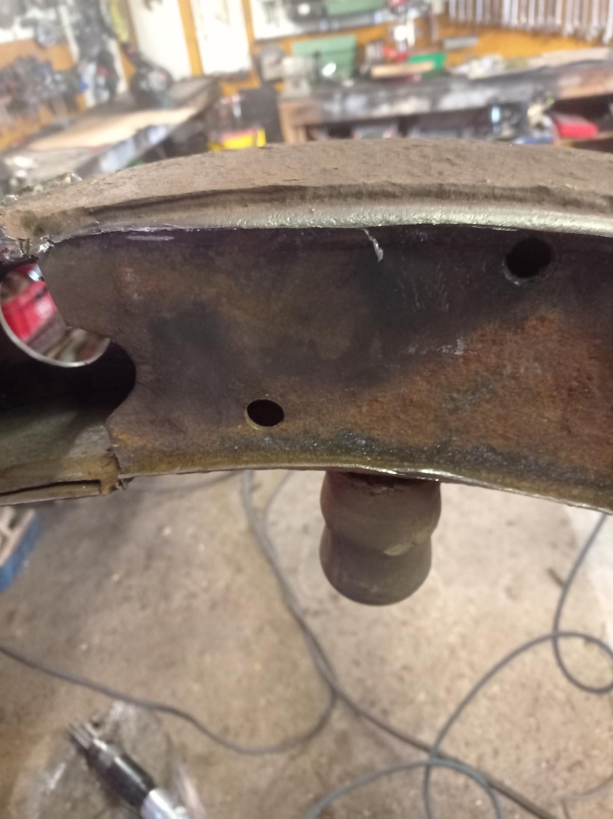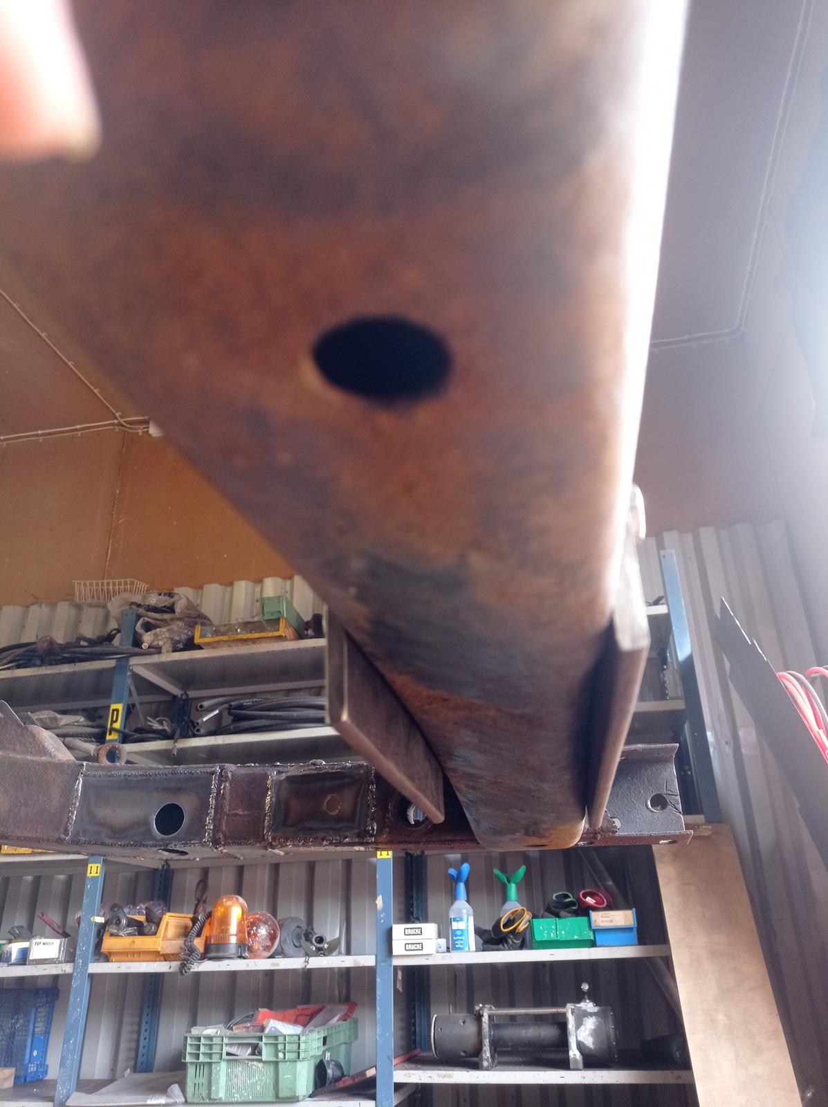 Tuli vähän rälläköityä runkoa auki ja putsattua. Alkaa ruostehitsuut olla loppusuoralla. Irroitettavan koukun tekemiseen löyty aika täydellinen palikka. Suunnilleen tuosta katkoviivan kohdalta, kun katkaisee, niin tuo läpyskä osa on täysin saman kokoin, kun itse koukun kiinnityspinta. Tuo palikka on 60x30mm umpirautaa! Siihen vielä kun hitsaa jonkun toisen palan kiinni, mihin saa kiinnitystapin reiät ja sille naaraskappale auton runkoon kiinni, niin tulee helvetin hyvä. Ainakin toivottavasti