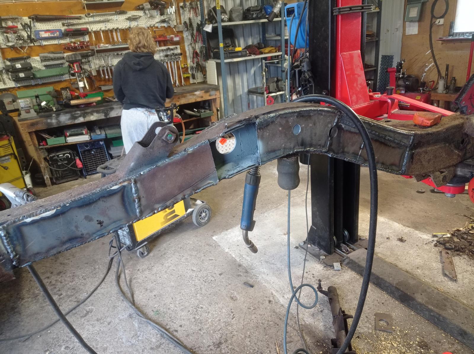 Alkaisi pahimmat ruostepaikat olemaan rungon osalta hitsattu. Ihan muutama pien paikka on vielä edempänä rungossa. Toki muuta hitsattavaa vielä on, esimerkiksi iskarin korvakkeita, yksi tai kaksi pakoputken kannaetta yms, muttei mitään mahdotonta. Kohta on varmaan ruvettava tekniikkaa rassaamaan ja maalaamaan...