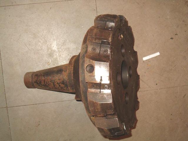 Löytyi vielä toinen vähän pienempikin jyrsinterä, 250 millinen, Sandvik tämäkin. Tässä kiinni kiinnitys kartio, vissiin sitten toi ISO 50, niinkuin Rytari epäilee. Neliöpaloilla molemmat, joka toinen puuttuu, vissiin tarkoituksella(molemmista) kaikki palojen kiinnitysosat on.