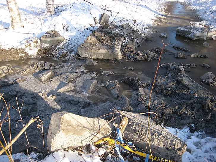 Tänään ojissa olikin jo vesi noussu 10 senttii. Tapsan ajoura näytti tältä...
