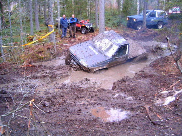 Ajelut ajettu,tai parit autot jäi vielä ajamaan kun piti lähtee pois.Kalustovaurioita ei tullut ilmeisesti kellekkään,maasto oli todella märkä->näin märkää ei ole tainnut koskaan ennen olla.Jonask ja uaz4x4 tulivat tasapistein voittajiksi,hyvänä kakkosena ana4x4 ja kolmosena pietarsaaren pojat mersullaan,kapa oli neljäs ja hänelle taas isot kiitokset kun auttoi rangea pääsemään pinteestä useaan otteeseen.Rangea vaivasi pienet renkaat mutta kuski tuntui siitä huolimatta olevan onnellinen