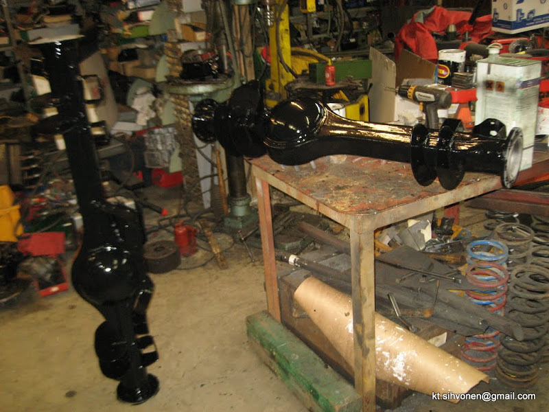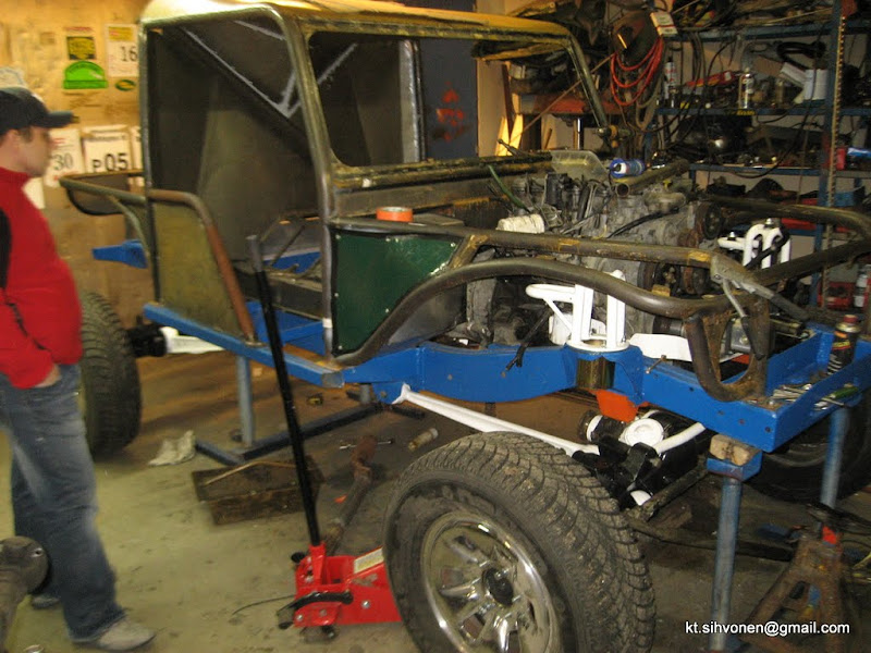 ![]() Runko saatiin sisään ja siihen ripustettiin akselit ja mooottori-vaihteisto paketti. Kori käytettiin päällä ja tehtiin oviputket sekä hieman peltiä kylkiin... Ja kappas, runko otti sit ja hävis taaas alta... ![]() Ja tällästä tuli aikaiseksi kun vähän aikaa suti menemään Seuraava päivänä pinotexsia pintaan.. Runkoa valmisteltiin pihalla, kelit on ollu onneksi kohillaan ettei ole tarvinnu fiillistelä sateessa ![]()