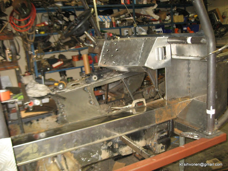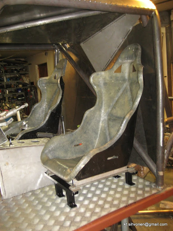 Hyvinhän se etenee, tais olla osat valmiina ja pulttailit ne vaan kiinni kun mä lähdin. Toisaalta jos peltiosat ym. valmistuu tuolla nopeudella niin auto on kasassa jo ens viikolla.