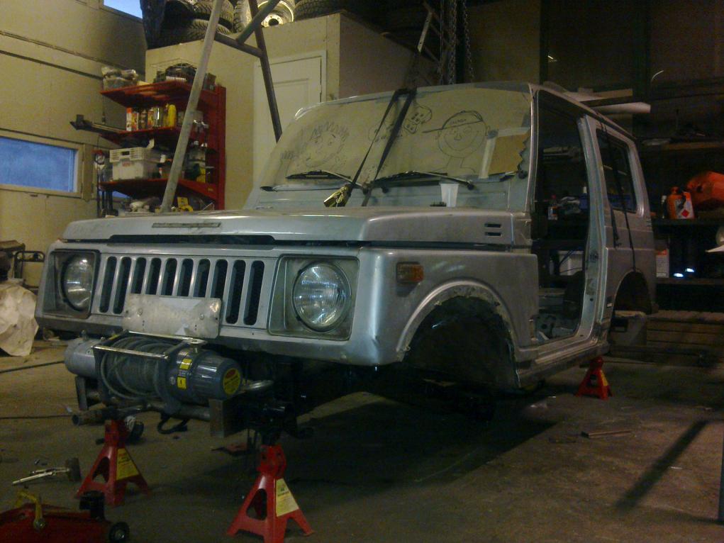 jaahas pitäskös välillä päivitellä.... elikkäs runkoa olen rapannut että saapi rueta hiekka puhalteleen.. etu akselilla on jousikupit tehtynä mutta iskarin kiinnikkeet puuttuu kummastakin päästä sekä edestä panhardi kun ei ole vielä sattunu sopivaa eteen.. kuvia tulee varmaan kun saa puhallettua ja maalattua osia..