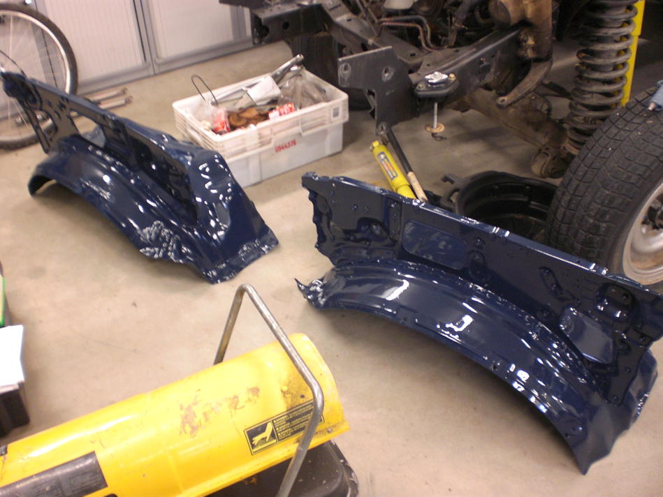 Loppusuoran hommat vielä ennen maalaria, etulokarinlevikkeiden kiinnikkeiden hitsausta ja pientä ruostekorjailua samalla, onneks jää noi paikat kaikki levikkeiden alle näkymättömiin, kun toi mätähitsaus ei ole koskaan kiinnostanut edes omien vehkeiden kohdalla.