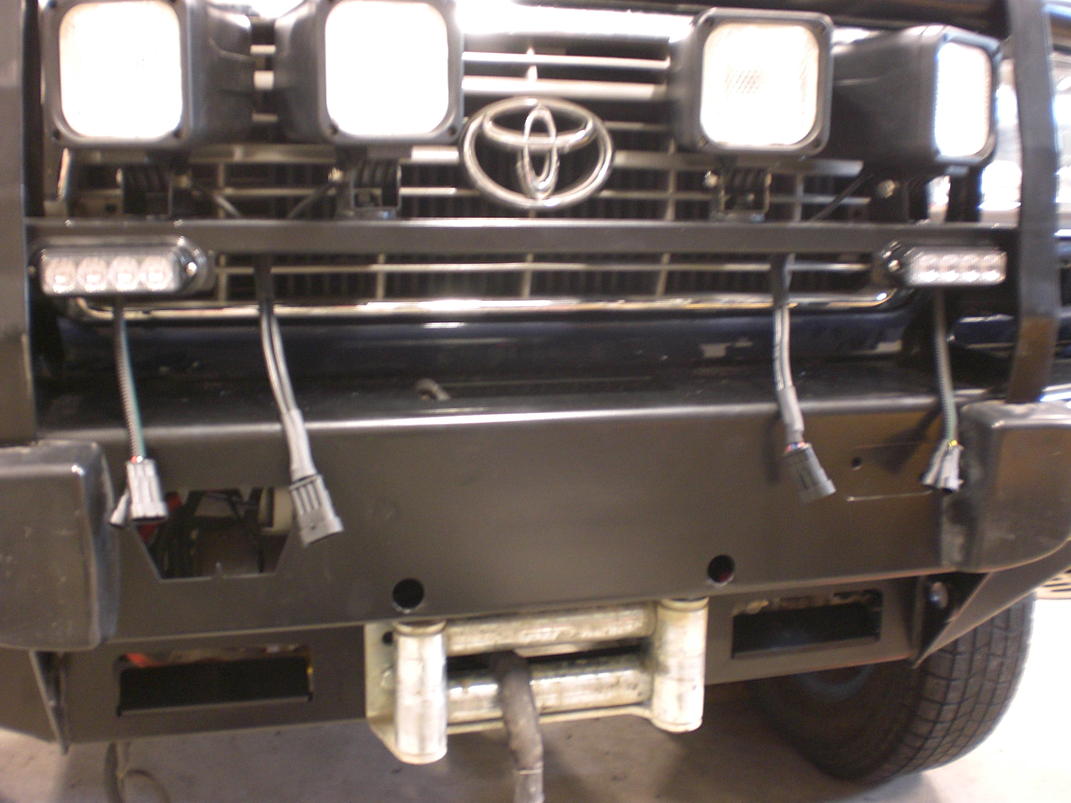 Ja kaikki laitteet mitä puskuriin kiinnittyy tulee liittimillä, jottei tarvi enää katkoa joka kerta johtoja ja liitellä uudestaan, ite puskurihan tulee nokkaa kiinni 3x12mm pultilla/puoli noihin runkoaisan päihin hitsattuihin 10mm lappuihin. |