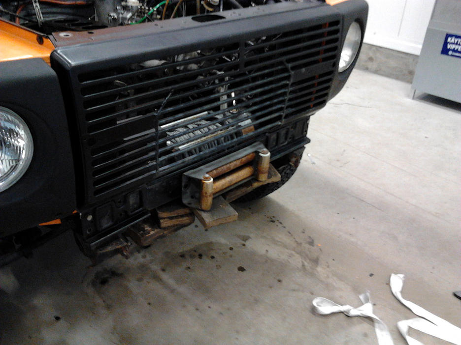 Alko sit insinöörin runosuoni kukkii, eli päässä vaan suunnitelmat vilisee. Vinssille teen konehuoneen puolelle pedin, joka tulee runkopalkkien väliin kiinni ja samalla integroitu paikka rullakidalle siihen ritilän allaolevan pellin tilalle. Olis tarkotus teettää laserleikatusta 5mm levystä paikallisella amiksella, kun kaveri on konepuolen opettajana. Voin laittaa piirustukset jakoon, jos haluaa teettää paikallisella pajalla tai jos kiinnostusta löytyy, niin pieni sarjakin onnistunee. 3D kuvat teen tuosta, niin voi pällistellä etukäteen. Pitää käydä vaan kuvat piirtämäs siel koulul ku ei oo omal koneel ohjelmia... Samaan syssyyn saa laaseri leikata tuohon ritilään uudet säleet ja samalla designiin integroituu mersun tähti. Alkuperäisestä säleiköstä käytän siis vain reunukset hyödykseni.