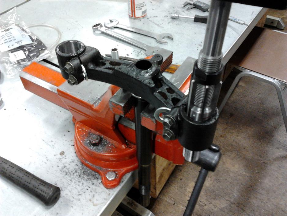 Hilun lehtijousien takakannattimien puslat. Alku hiukan arvelutti että kuinkahan tuossa äijän käy, mutta hyvin se meni. Tarvittiin pikkuinen pullotunkki, jolla sai oikean välin aikaiseksi ja sitten lisäksi hallitunkki, pukit, mutterimopo jne.