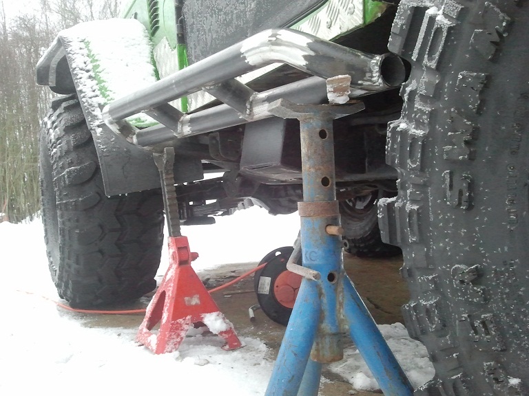 Tulee Matti tarkoituksella mahdollisimman korkealle nuo helmaputket. Tuo jarrujen painesäiliö lähtee kyllä tosta jonnekkin muualle tai sitten pienempi tilalle. Pakoputki myös toisella puolella on vielä todella huonossa paikkaa
