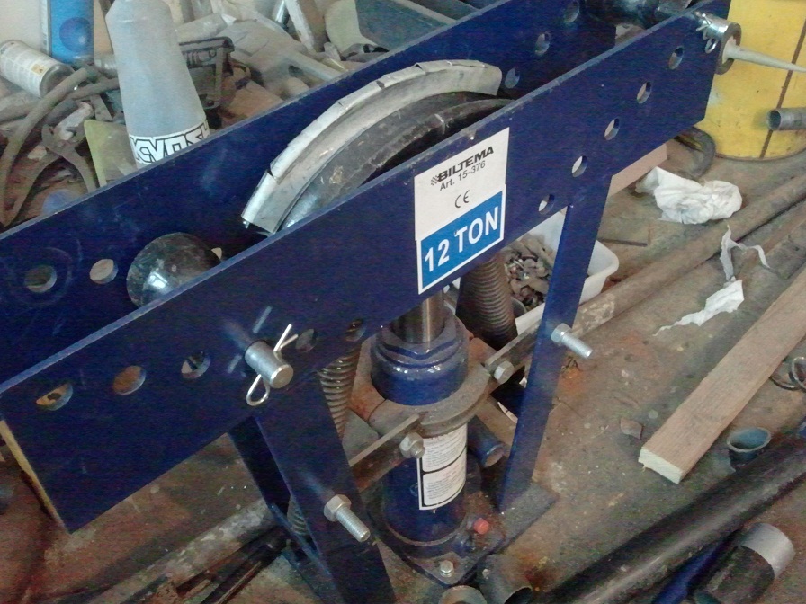 Nyt tuli ostettua sellanen vehje, että naapurin hampaaton mummokin tälle nauraa. Legenda, Biltema putkentaivutin!! Parit parannukset tein heti, tunkki oli olemattomalla kahdella pultilla kiinni pohjasta ja heilui miten sattuu, Tein tuet ettei pääse liikkumaan. Lisäksi lesti on hieman löysä putkeen, joten väliin kummallekkin puolelle, olisiko ollut 0,7-0,8 mm metalliliuskat. Vastakappaleiden leveys putken koon mukaan. Eli isoin koko kauimmaisessa reiässä. Melkoisen työlästä.