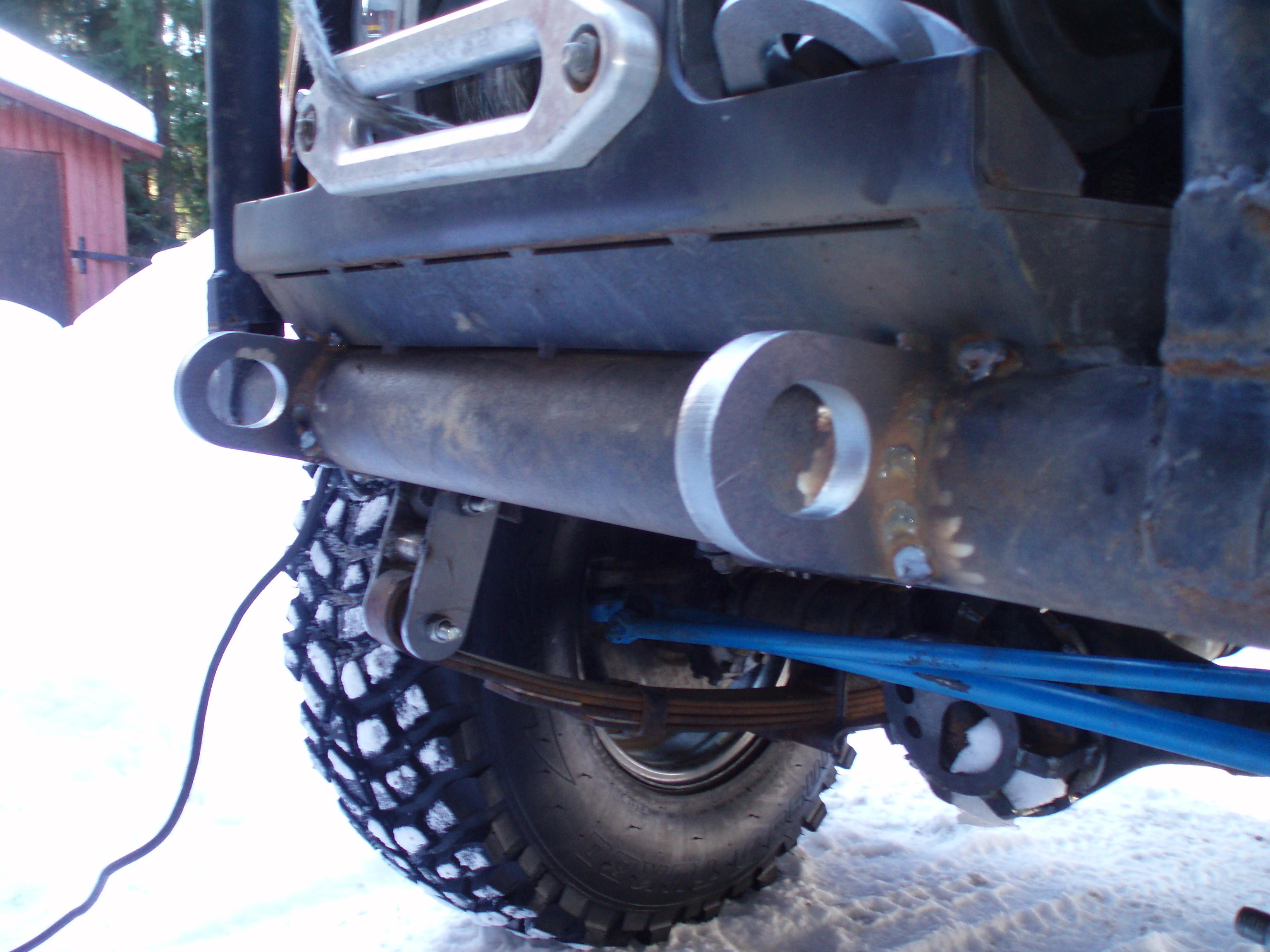 Kannattaa tehdä nuo tractionbarit kerta on nostettu 3",ainakin kaverilla on 3" calminin alustalla jo melko paljon axlewrappia havaittavissa ja samalla saa pompottamisen pois. Akseliputkeen joutuu vaan tekemään vahvikkeen siihen kohtaan mihin tractionbar tulee kiinni.
