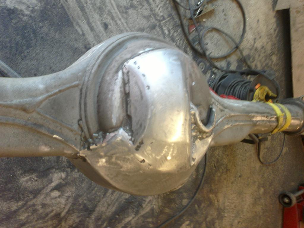 eli mutteri hitsattu sopivaan reikään ja pultti katkottu sopivan mittaseks + kupariprikka tiivisteeks: Sitten nappasin vanhasta peränkuoresta propun uusiokäyttöön, samoten G mersun takapanhardin toisen pään, porasin perän alapuolelle reiän ja hitsasin kahtapuolta 'putken' banjoon ja vanha proppu sen sisälle suojaan. Nyt ois taas tyhjennysproppukin mistä saa ainakin enimmät peräöljyt ulos. Saumasta tuli kyllä paljon tasasempi kuin mitä kuva näyttää ja hitsattu molemmin puolin joten luulis että pitää... Viimisenä tuli tekastua tuosta takaperän pinionin laipasta ns. double drilled version eli nyt siitä löytyy oikea jako myös tuolle sovitinlaipalle.Ens viikolla jos kävis vaihtamassa migin pullon täyteen niin vois hitsata tuon putkipäädyn paikoilleen ja pääsis miettimään alapuolen panssaria/materiaalin lisäystä että kestää hieroa eikä mee puhki ihan heti... Viimeksi muokannut mparty : 20.04.2013 18:21 |
