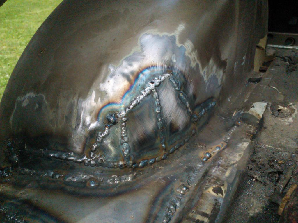 Isäukko tekaisikin kaaret taakse, jotka se lupaili laittaa paikoilleen (olikohan seuraavana päivänä), itse taas muistelin migillä hitsaamisen alkeilta ja turasin takakontin puolella onnettomia paikkoja. Seuraavana yönä kuitenkin ei nukuttanut, kun vaivasi juuri se, jos isäukolla hitsuutan tätä niin eihän sitä peiliin ilkeä kattoa. Niinpä aamulla kukonlaulun aikaan suoraan tallille ja eikun kaaria täppäilemään ja ihan minä ite. Siltä ne kyllä näyttävätkin, mutta harjoitus tekee......