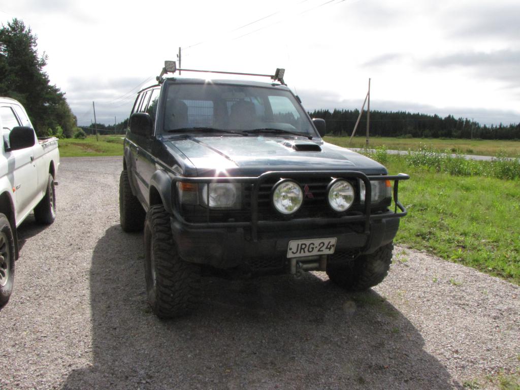 Nyt olis kaks pajeroa talossa ja tuota pitäs alkaa korotteleen vielä. Ero on niinku yöllä ja päivällä ku toinen on pitkä malli ja ilman nuita 12.5"x33 renkaita