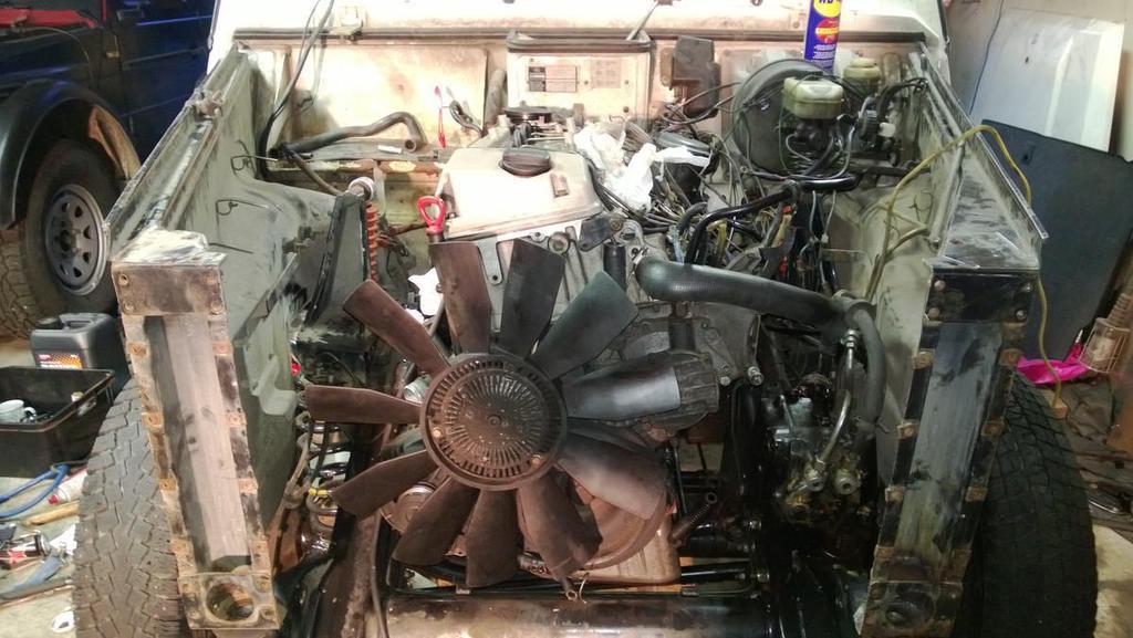 Viime viikkojen aikana on konehuone mennyt kasaan ja eilen illalla mersu tuli jo omin voimin ulos tallista. Mukavan tuntoiset kyydit on tuollaisessa pitkässä geessä kun alustakin on timmissä tikissä. Tuossa vielä video tältä aamulta, laatikko on vielä kytkemättä eli vain pakki ja kakkosvaihde on käytössä, mutta hyvin näyttäisi vetelevän.