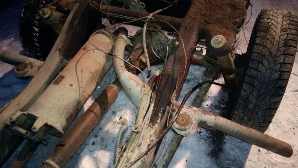 Tämä on käyttöautoksi tehty, eli maantie sekä metsäautoteitä varten ei offikisoihin tai muuhun auton hajoittamiseen tähtäävään hommaan. Ja kuvakulma hiukan valehtelee ei paljoa taida runkopalkkia alempana olla.