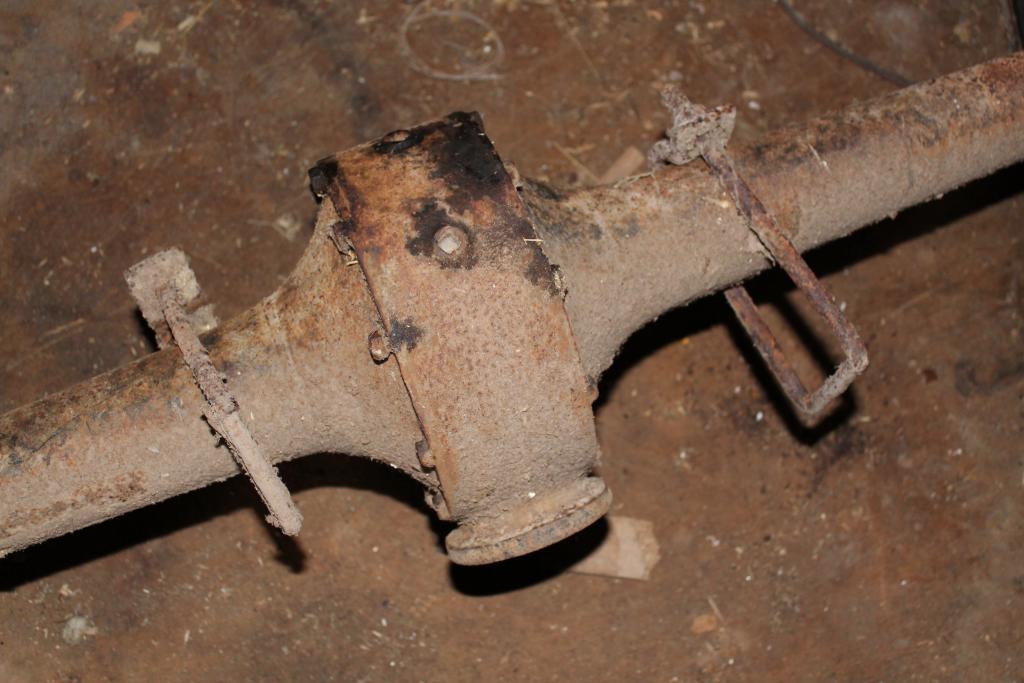 Näyttää suuresti A-mallin fordin taka-akselilta, kuvissa akseli on ylösalaisin, poikittaisen lehtijousen riipukkeen kiinnityskorvakkeet pilkottavat akselin alapuolella.