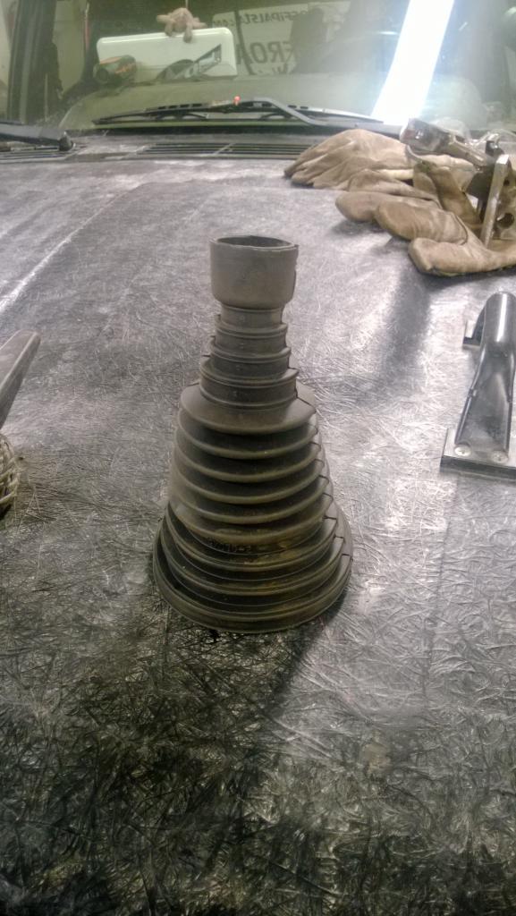 Doublerin kepin juuresta kun on puuttunut tiivistys eli siellä on ollut pellissä vain kepin mentävä reikä niin pitihän sitä vähän tiivistellä paremmaks. Jos ees osa vedestä/kurasta pysys pois konttorista. Otetaan yksi moponetin yleismallin vetoakselinkumi joka sattui löytymään varaston aarteista, trimmataan sitä hieman, pujotetaan kepin alapäähän pätkä kumiletkua sovitteeksi ja viritellään kumi paikoilleen. Sitten kumi kiinni kepin alle kardaanitunneliin ja voilá -> kepin juuressa olis nyt kumitiivistys Ei varmaan vesitiivis mutta ainakintiiviimpi kuin pelkkä reikä. Vielä panssarit loppuun, maalia päälle ja doublerin asennus ois saatettu valmiiks... |