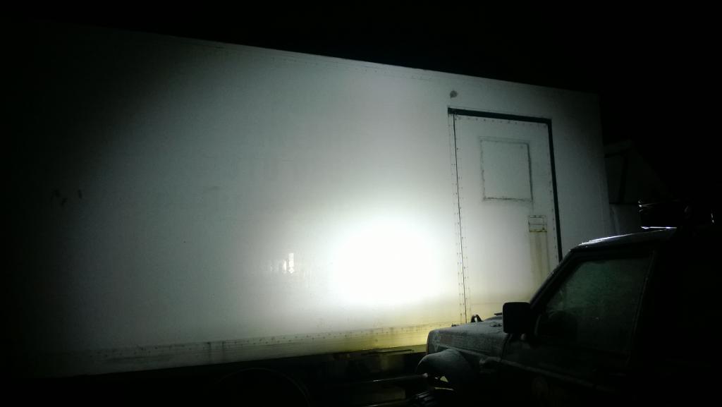 Kuskin puolen led bar päällä, aika tasasen näkönen valo ja suht leveä: Kuskin puolen led bar päällä, Jeeppi kuorkin vieressä: Molemmat led barit päällä: En tiiä selviääkö noista mitään? |