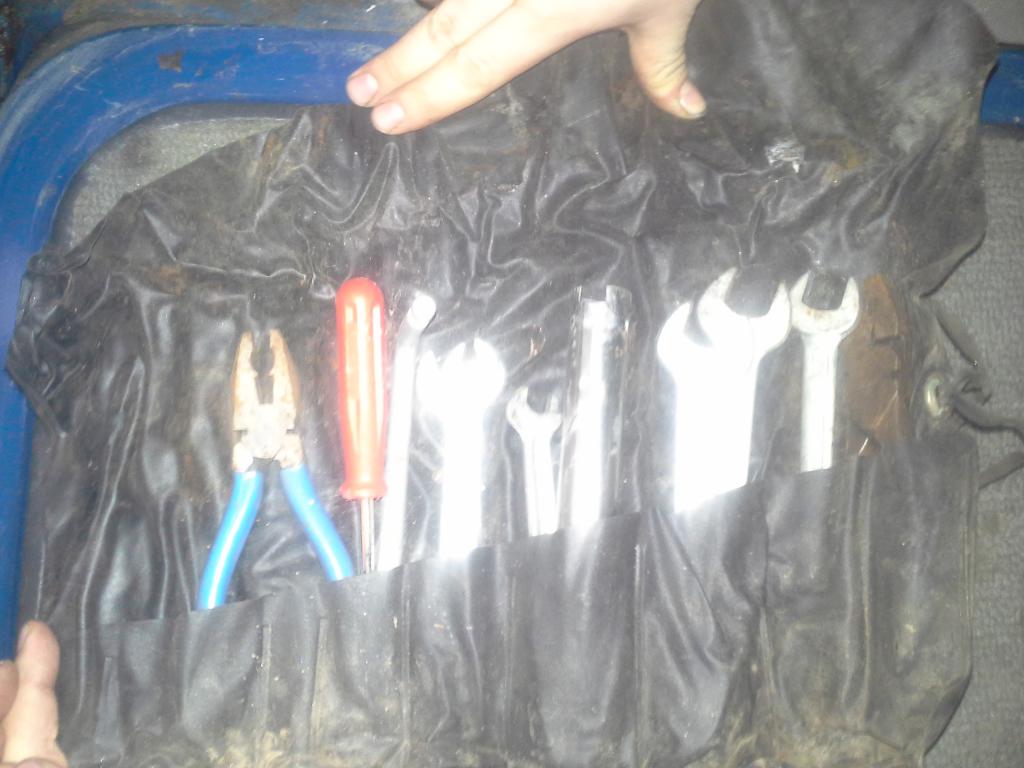 Auton oma työkalupussukka, jotain työkaluja melkovarsti puuttuu.