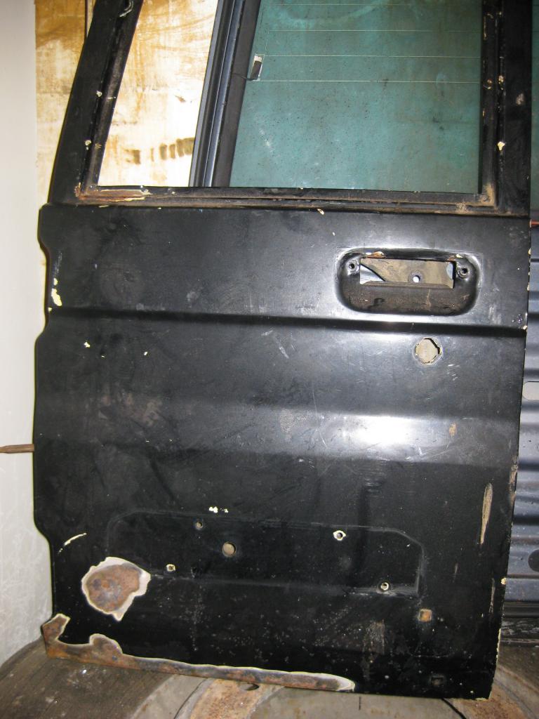 Toyota lj:n takaovet, kohtuu siistit, alareunassa pintaruostetta kun ovat hiekalla putsattu muttei vielä maalattu.