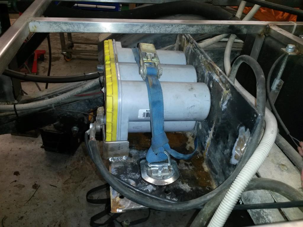 Paljoo ei jäänyt tilaa vinssin ja moottorin väliin mutta riittävästi tohon täytyy tehdä joku suojapelti jotta vinssin vaijeri ei paloittele hihnoja.