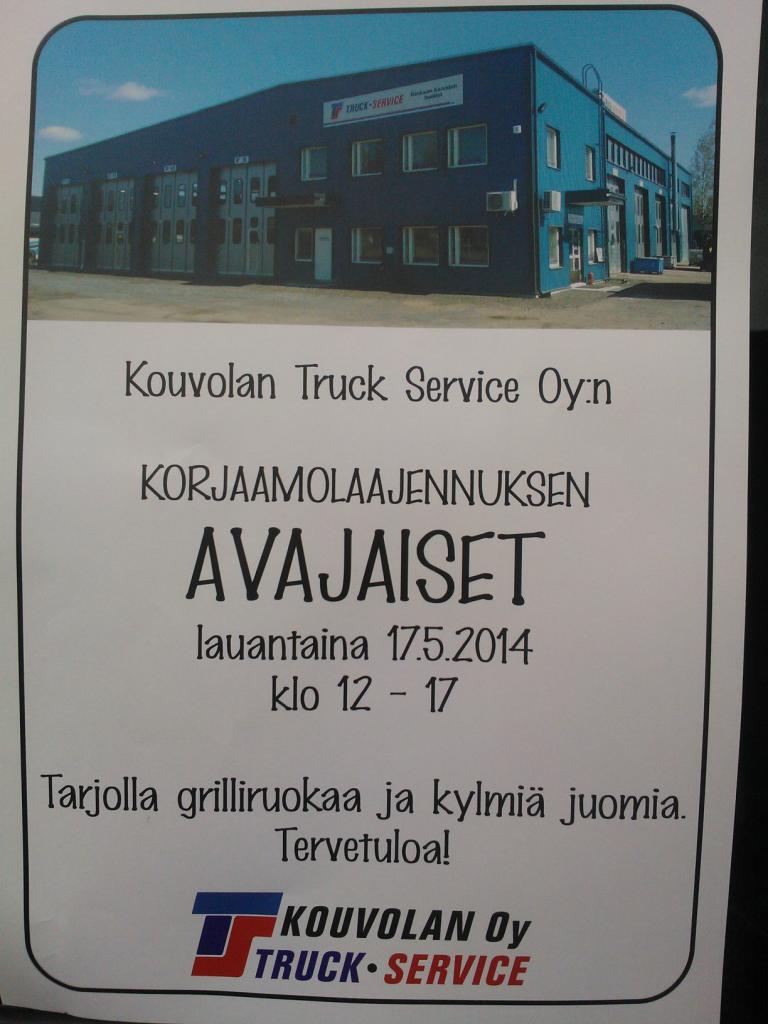 Kouvolan Truck Service korjaamon laajennuksen avajaiset la. 17.5 . Kaivattaisi muutamaa offikulkinnetta näytille. Jaba antaa lisätietoja.