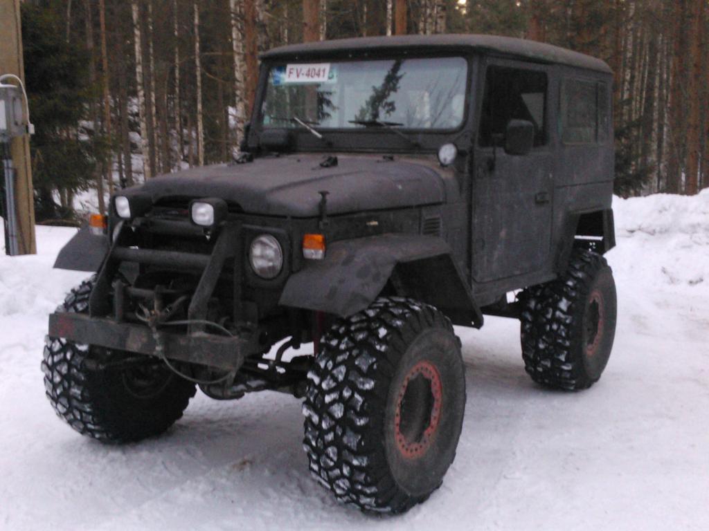 BJ40 v8 projektiMyyty Kokeillaan löytyykö joku joka haluaa viedä projektin loppuun.vm-80 Bertta, Ei tosiaankaan mikään ruusu, mutta kukkiihan perunakin. Hitsattavaa ei leimalle ole, mutta jos oikein nätin haluaa ni sitten... 305 v8, HJ60 laatikot, omat akselit, takana palalukko, Hj ohjaustehostin, SOA, levyjarrut joka nurkassa, turvatankki takakontissa, 12000 uusi sähkövinssi keulalla, 37 Pitbullit lukkovanteilla, valoja, jne. kaikkea en muista. Kone purettu, hoonattu ja laakeroitu. Rokkiorkesteri tarjoilee bensaa. Auto on siis katsastettavissa, kunhan rakentelee loppuun. Lähinnä tulee mieleen jarrujen ja kaasarin säätö, ajovalojen vaihto, jotain sähköhommia. Vaihdelaatikosta tai kytkimestä tulee hankaava ääni. Konetta ei ole muutoskatsastettu. Papereissa 3.0 diesel. Auto on koeajettavissa Klaukkalassa Hinta noine kaikkineen 4000€, ilman renkaita ja vinssiä 3000€, rullaavana ilman konetta ja vaihteistoja 2000€ Vaihdossa voi ehdotella mönkijää tai leimattua maasturia Sami 0509111592 Myyty