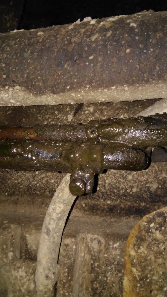Niinkun rempassa yleensä, joku pultti tai mutteri on mukamas ylimääränen. Pakosarjan tukiraudan pari pulttia jotka tulee öljynjäähyttimen läpi, unohtuivat näköjään.. Tämähän taas aiheutti vähäisen nestevuodon kyseisestä paikasta. |